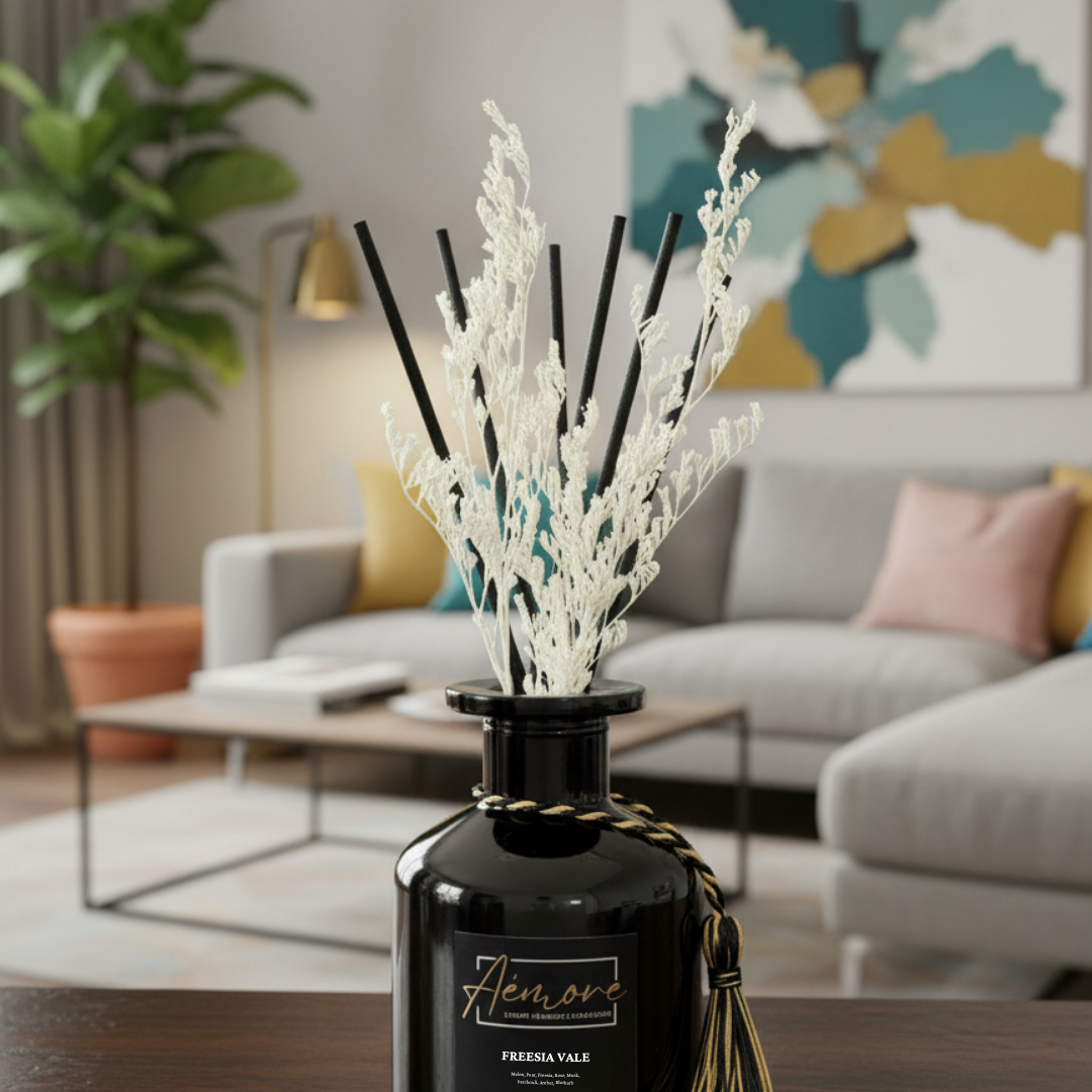 Transform any room into a sanctuary with Aémore’s handcrafted reed diffusers. Designed for those who seek lasting elegance, our diffusers blend the artistry of fine perfumery with the quiet luxury of effortless ambiance.